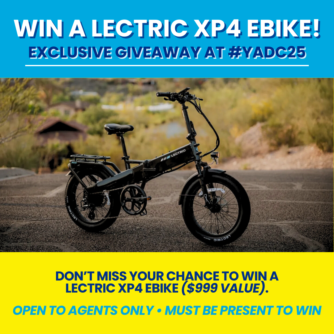 Want to ride off in style? One lucky Young Agent will win a brand-new e-bike at YADC25! 🎉 But here’s the catch — only agents who show up for Friday morning’s session will be entered to win. Don’t sleep in… this is one prize worth waking up for!